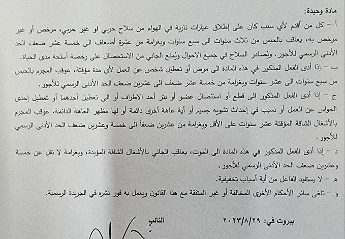 قانون معجل مكرر لتجريم إطلاق النار في الهواء