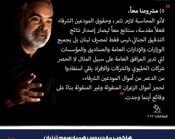 لأنو المحاسبة لازم تتم، وحقوق المودعين الشرفاء فعلاً مقدسة، سنتابع معاً ليصار إصدار نتائج التدقيق الجنائي،ليس فقط لمصرف لبنان بل بجميع الوزارات والإدارات العامة والصناديق والمؤسسات التي تدير المرافق العامة على سبيل المثال لا الحصر شركات الخليوي والشركات والافراد يللي استفادوا من الدعم من أموال المودعين الشرفاء،لحجز أموال الزعران المنقولة وغير المنقولة بناءً على وقائع أينما وجدت.