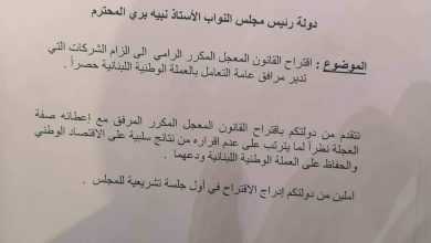 تقدمت اليوم بإقتراح قانون بصفة المعجل المكرر وذلك لفرض التعامل بالليرة اللبنانية حصراً على الشركات التي تدير مرافق عامة للدولة.إن…